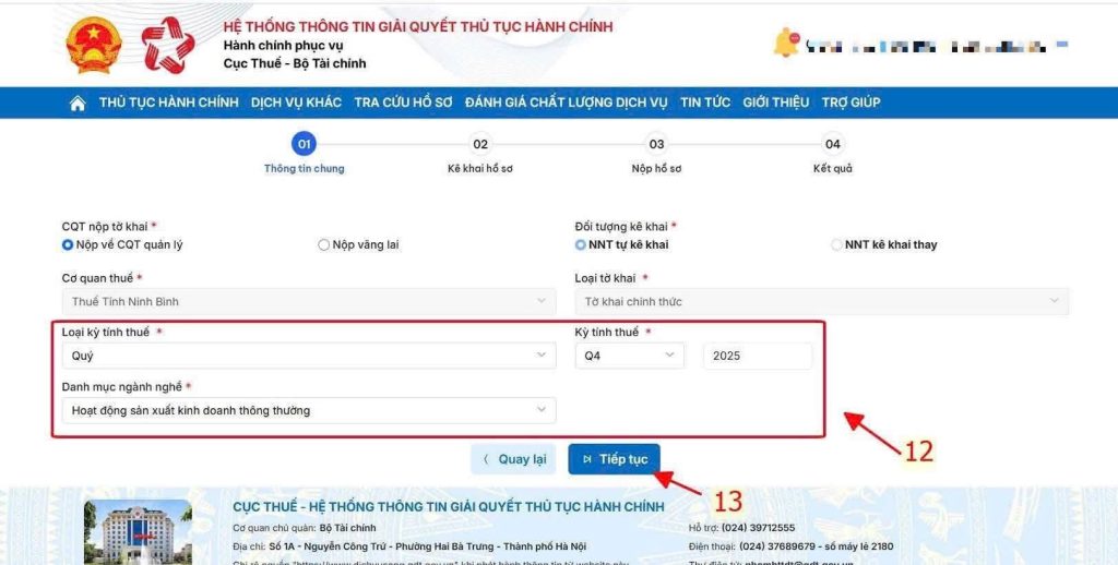Các bước nộp tờ khai thuế trên công dịch vụ công