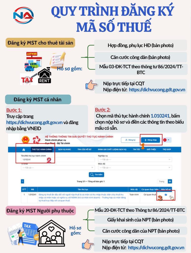 Cập nhật 22/03/2026 Cách đăng ký mã số thuế cá nhân cho thuê tài sản trên cổng Dịch vụ công Khi nào cần đăng ký MST? Cá nhân có hoạt động cho thuê: Nhà, căn hộ Mặt bằng, cửa hàng Tài sản khác Nếu chưa có mã số thuế → bắt buộc phải đăng ký để kê khai thuế. Dưới đây là các bước đăng ký cực kỳ đơn giản