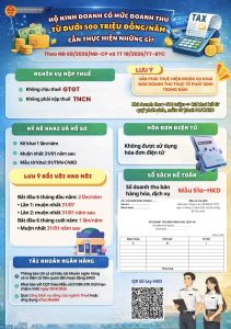 Nhằm thực hiện đúng quy định của pháp luật về quản lý thuế và tăng cường minh bạch trong hoạt động kinh doanh, các hộ kinh doanh và cá nhân kinh doanh có mức doanh thu dưới 500 triệu đồng/năm cần lưu ý các nội dung trọng tâm sau: 1. Căn cứ pháp lý 2. […]