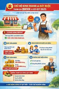 Căn cứ văn bản: Luật BHXH số 41/2024/QH15 (Hiệu lực: 01/07/2025) Từ ngày 01/07/2025, theo Luật Bảo hiểm xã hội 2024, chủ hộ kinh doanh có đăng ký kinh doanh chính thức thuộc đối tượng tham gia BHXH bắt buộc. Đây là điểm mới quan trọng, mở rộng diện bao phủ BHXH sang khu vực […]