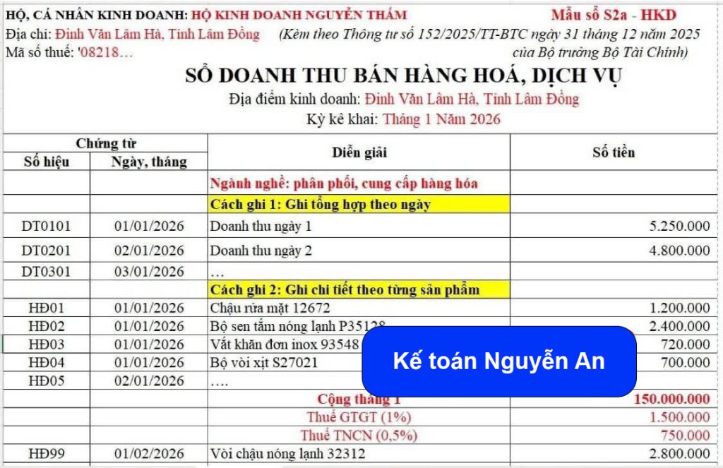 CÁCH GHI SỔ: Mẫu số S2b-HKD (2 cách)