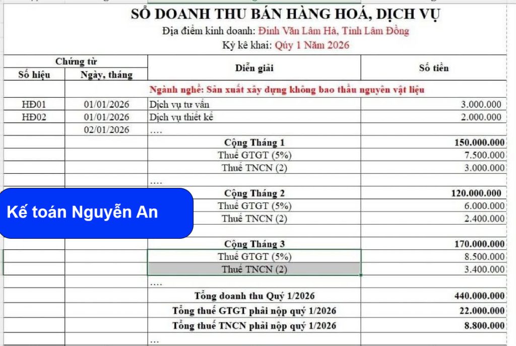 - Sổ doanh thu bán hàng hóa, dịch vụ: Mẫu số S2b-HKD