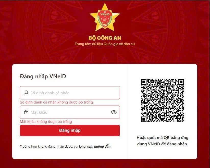 – B2: Điền số CCCD, mật khẩu -> chọn “Đăng nhập”, mở vneid để lấy mã OTP gồm 6 số, sau đó xác thực và nhập Passcode