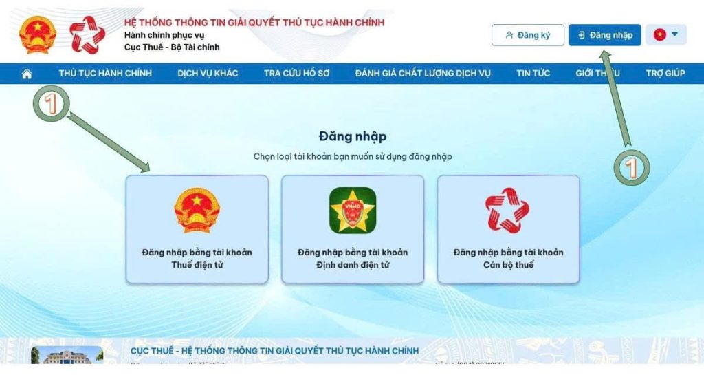 • Chọn Đăng nhập → Đăng nhập bằng tài khoản Thuế điện tử