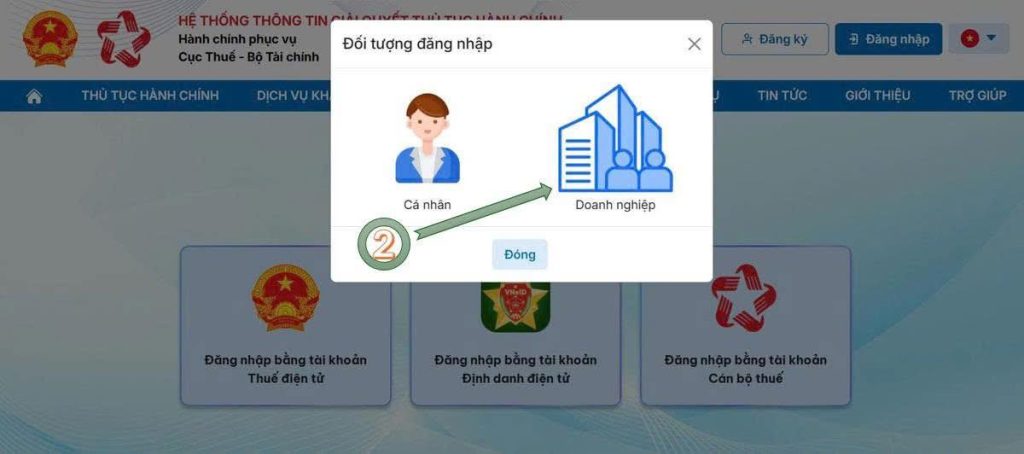 • Khi hệ thống hỏi đối tượng đăng nhập → chọn Doanh nghiệp.