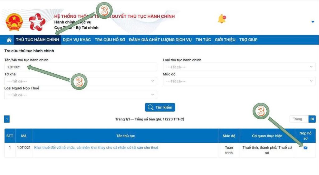BƯỚC 3. TÌM THỦ TỤC KÊ KHAI