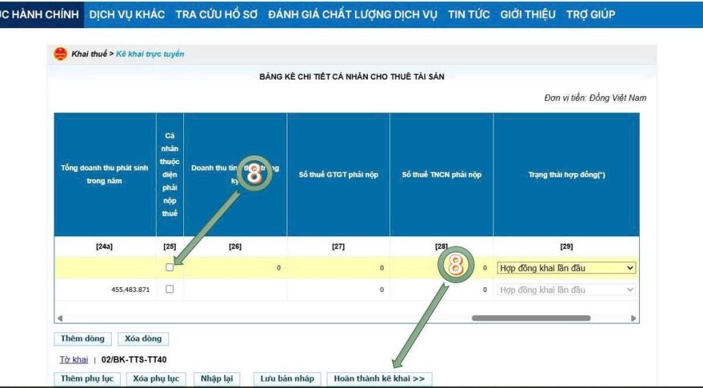 BƯỚC 8. KHAI PHỤ LỤC 02/BK-TTS-TT40 (CHI TIẾT TỪNG Ô)