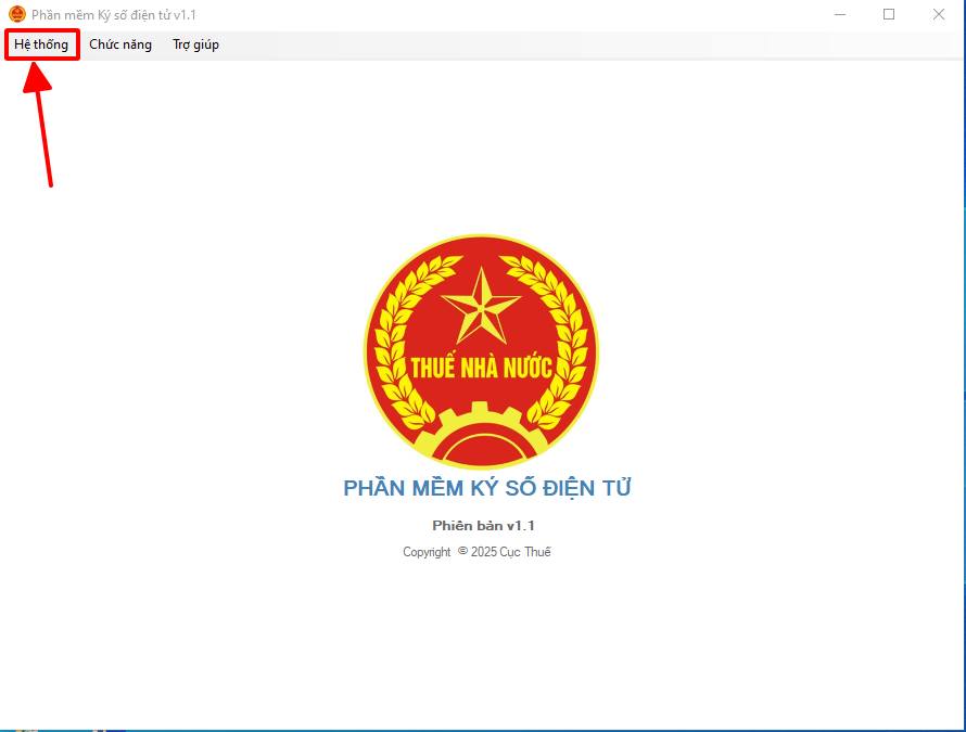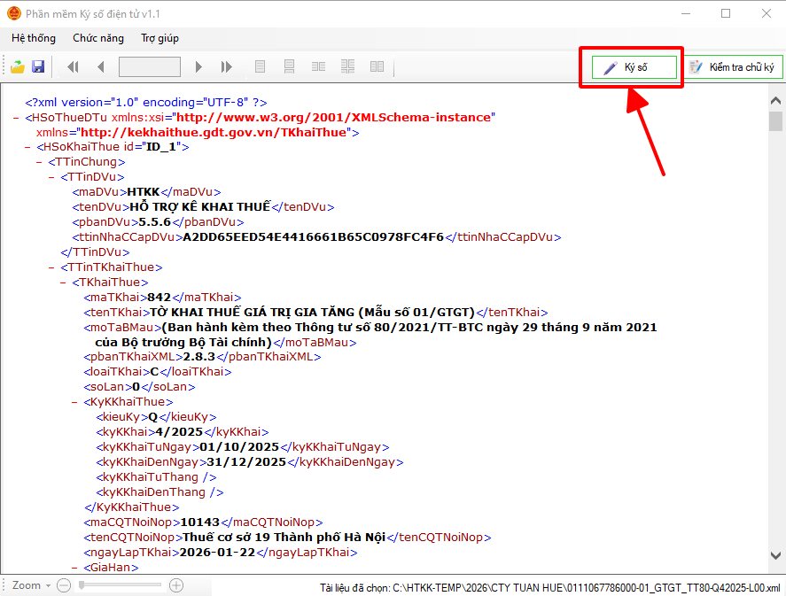 Bước 2: Trên giao diện phần mềm ký số điện tử CTSigningHub chọn –> Hệ Thống –> Mở tệp –> chọn đến file XML tờ khai đã kết xuất từ HTKK