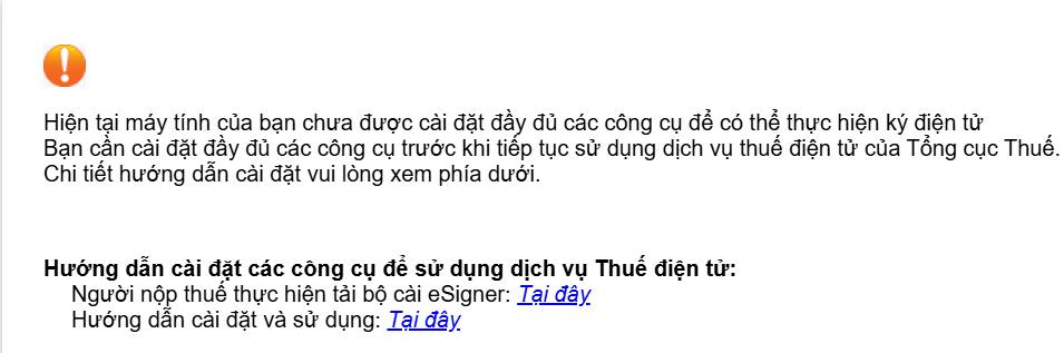 Hiện tại máy tính của bạn chưa được cài đặt đầy đủ các công cụ để có thể thực hiện ký điện tử